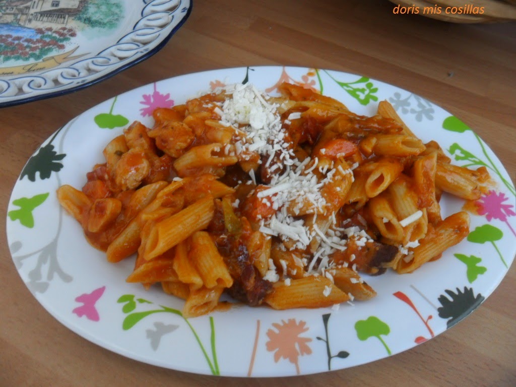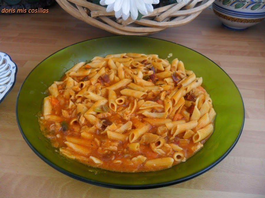 Cocer los macarrones en una cazuela con abundante agua con un poco de sal y una hoja de laurel tal como nos indique el fabricante. Una ves cocidos, aclaramos en agua fría y escurrimos.Reservamos.