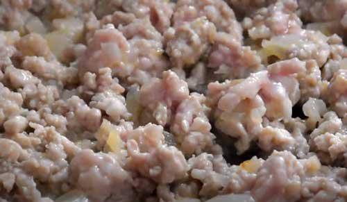 Ahora, subimos el fuego y echamos la carne de pollo picada o cortada en trocitos y dejamos unos minutos hasta que haya cambiado de color y pierda el color a crudo.