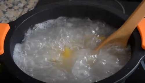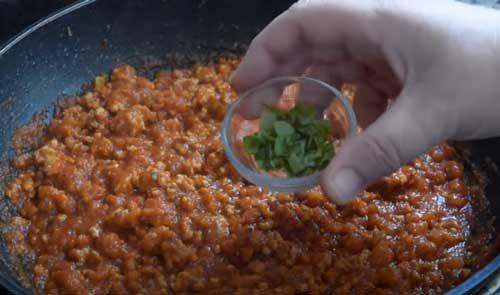 Entonces es cuando agregamos unas hojas de albahaca picada y apartamos del fuego. Reservamos la salsa mientras hacemos la pasta.