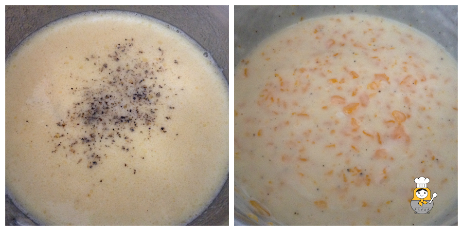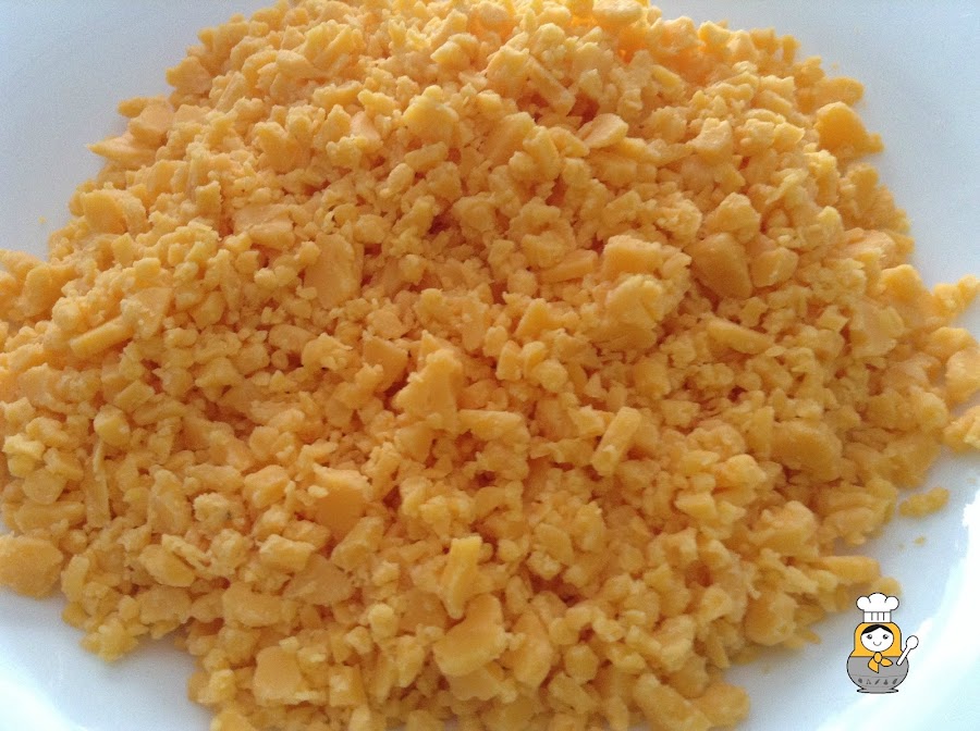 Mientras la pasta se está cociendo podemos picar o rallar el queso. Si usáis un bloque lo más fácil es rallarlo pero si solo encontráis el queso Cheddar en lonchas, como nos pasó a nosotras, podéis picarlo en la picadora.