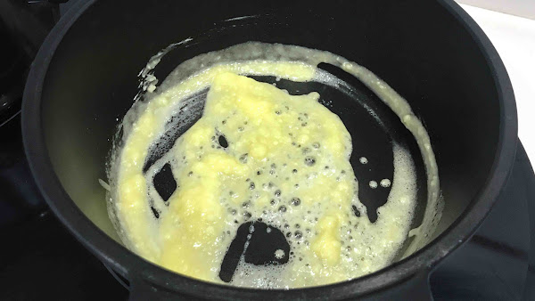 Prepara una olla a fuego medio alto (7/10) y pon a calentar en ella la mantequilla.