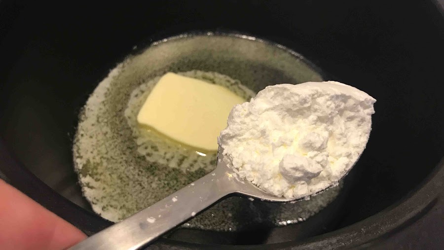 Añade el almidón de maíz y remueve para que se dore con la mantequilla.