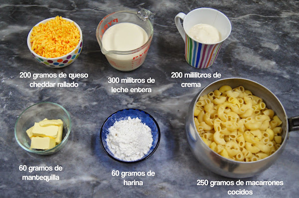 Este mes le tocó al blog "Mas dulce que salado" ser asaltado. Elegí preparar esta receta (pueden encontrar la original aquí) porque toda mi vida, desde que como macarrones con queso de caja, he querido preparar los originales, así que esta era la excusa perfecta. Es una receta rápida y queda millones de veces mejor que los de caja. El queso a utilizar no tiene que ser necesariamente cheddar. Se le puede agregar sal a la salsa dependiendo de qué tan salado sea el queso.