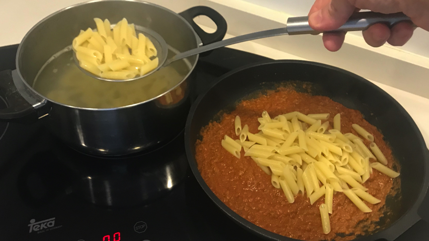 Termina el tiempo de cocción recomendado por el fabricante dentro de la salsa.