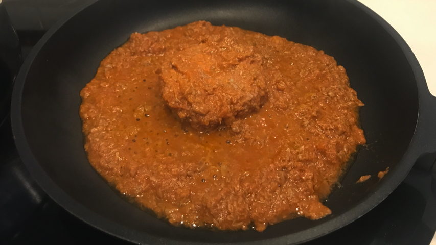 Pon la salsa boloñesa a calentar en una sartén a fuego bajo.