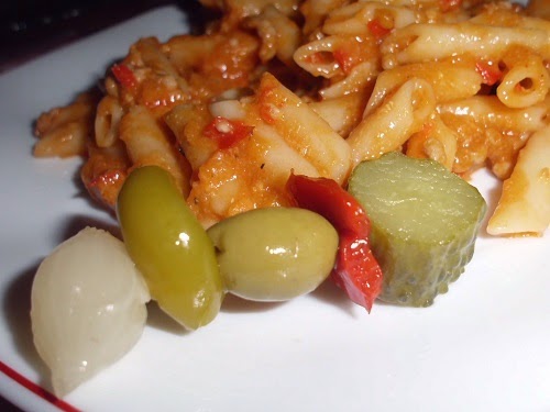 Ya está lista la salsa, solo hace falta cocer los macarrones, añadir el tomate frito y la salsa que acabas de hacer en la Thermomix.