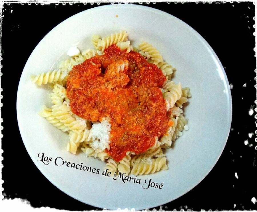 Cocemos la pasta, mientras ponemos en el vaso de la batidora la cebolla con el tomate triturado y trituramos mas. Echamos en una sarten un poco de aceite de oliva y calentamos el tomate con la sobrasada. Cuando esten los macarrones los emplatamos y echamos el tomate encima con el queso rallado.