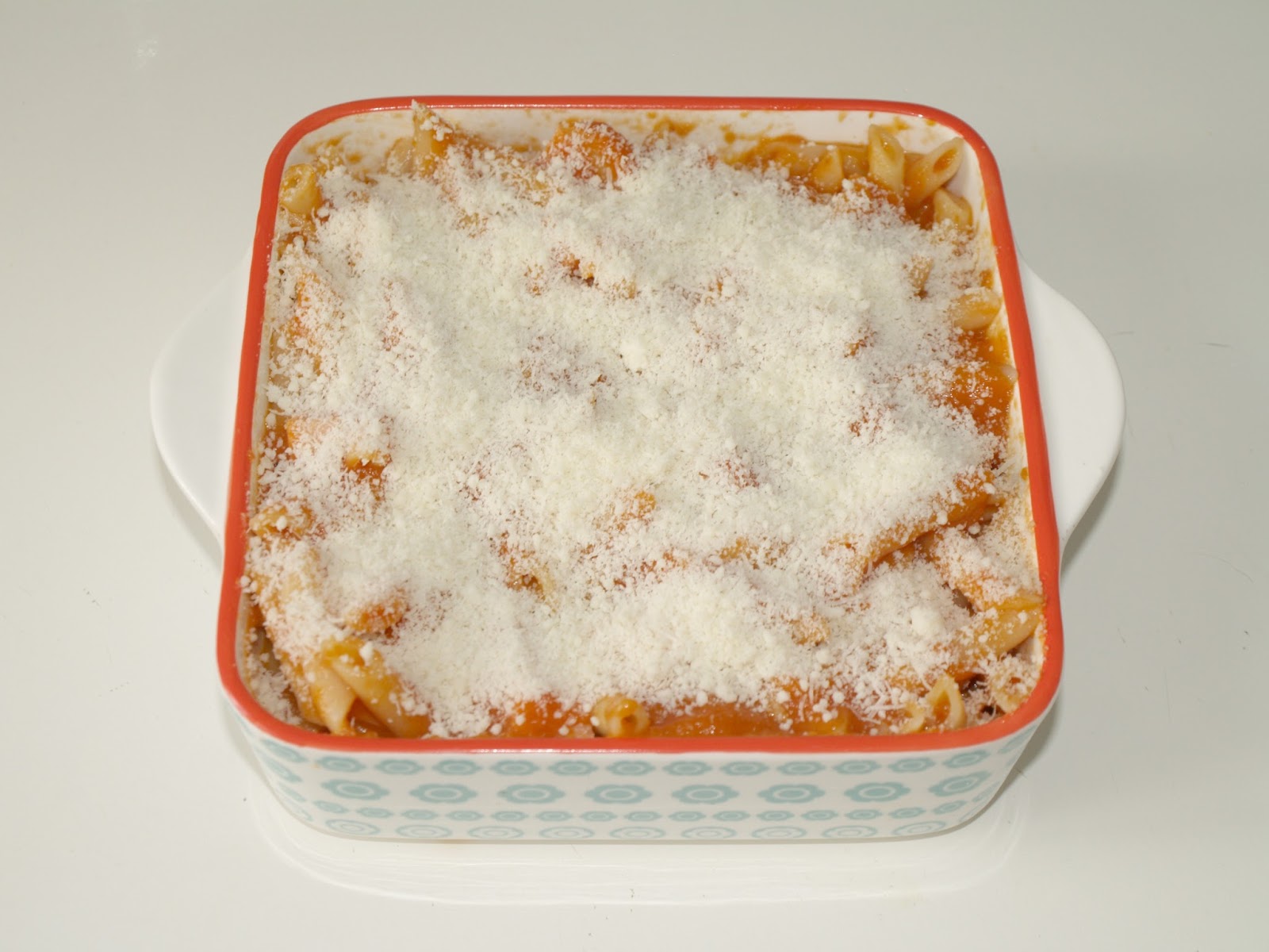 - Por último espolvoreamos generosamente con el queso rallado y metemos unos minutos al horno con la opción del grill encendida hasta que se dore el queso. Si la salsa está fría, hecha con antelación, pondremos el horno caliente unos minutos antes de granitar.