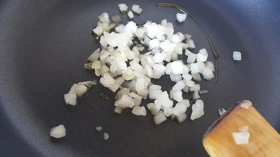 En una sartén con un poco de aceite de oliva sofreímos la cebolla picada.