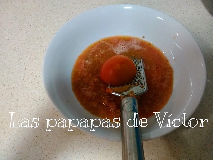 Mientras se pocha todo, vamos rallando los tomates