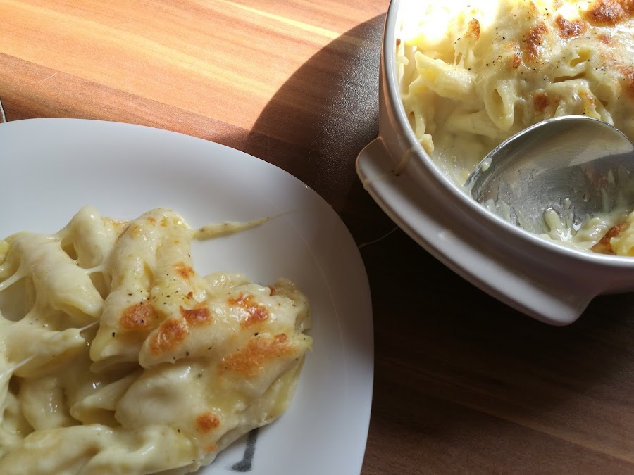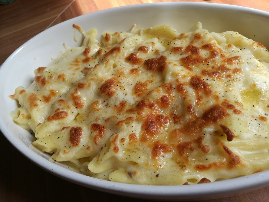 - Poner todo en una fuente de horno, espolvorear el queso, poner unos trocitos de mantequilla y gratinar 15 minutos en el horno