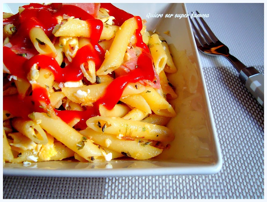 El ketchup potencia el sabor del plato, y lo distingue del clásico macarrones con tomate.