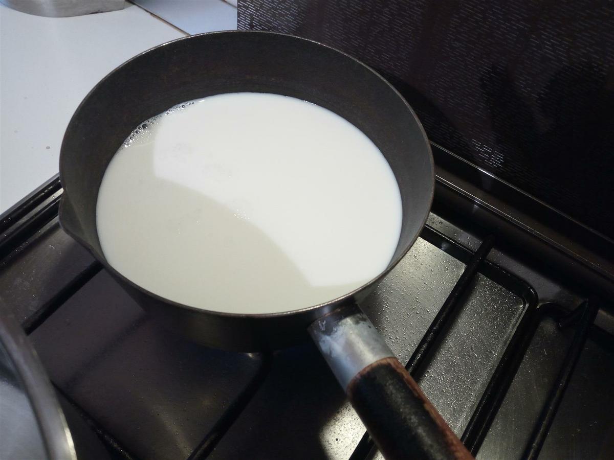 Primer paso es preparar la bechamel: yo uso una versión expresa, que es la que siempre uso en el local donde trabajo. Poner la leche a hervir.