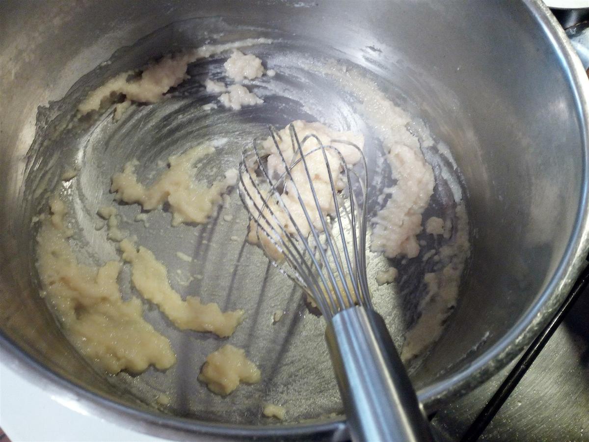 Cuando la mantequilla esté fundida, incorporar la harina y mezclar, hasta formar el roux.