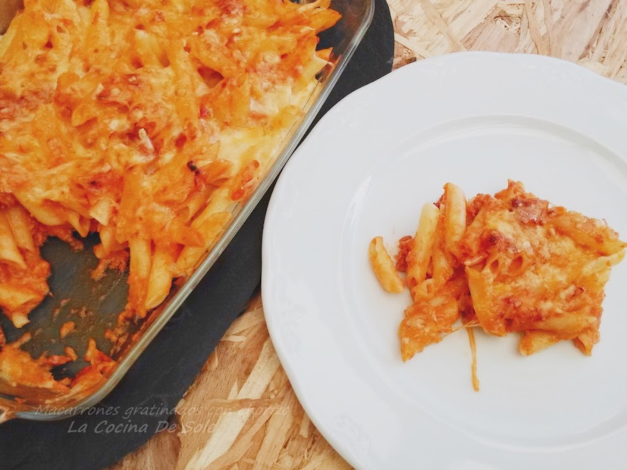 Pasado el tiempo de los macarrones, los escurrimos y colocamos en una fuente para horno.