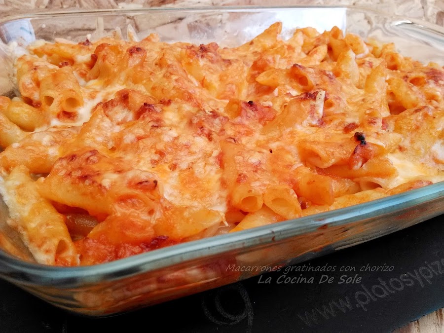 Sobre ellos le vertemos la salsa y mezclamos un poco para que se integre. Sobre ellos vertemos queso para fundir al gusto e introducimos en el horno para gratinar durante unos 10 minutos, o hasta que lo veas doradito.