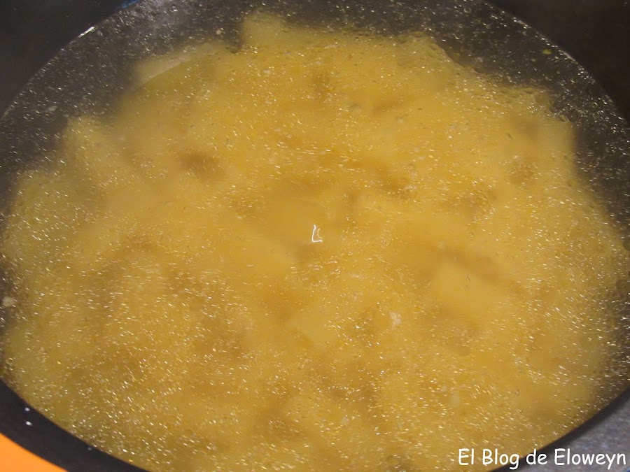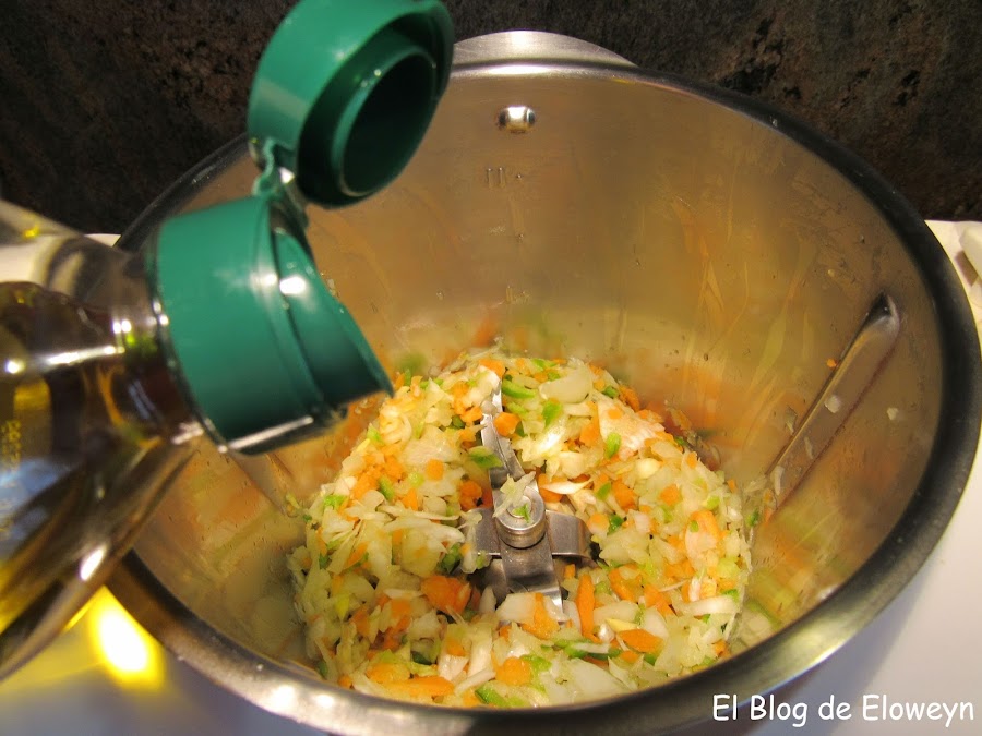 Programamos 5 minutos, varoma, velocidad cuchara. No pondremos el cubilete para que se evapore el líquido.