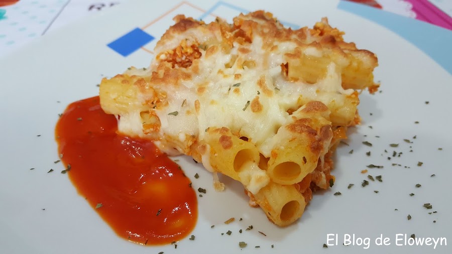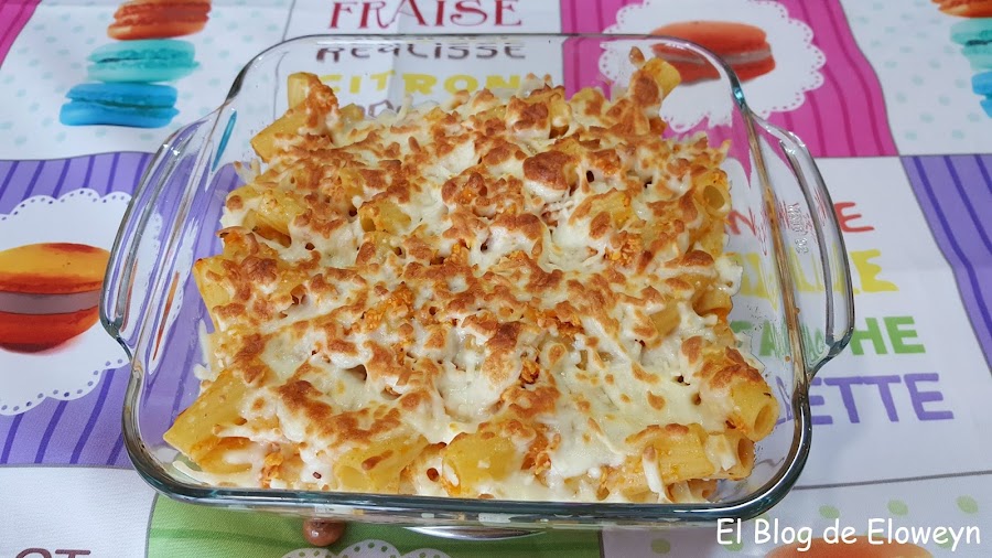 Ponemos la bandeja con los macarrones a gratinar en el horno. El queso se gratina rápidamente. Tened cuidado de que no se os queme.