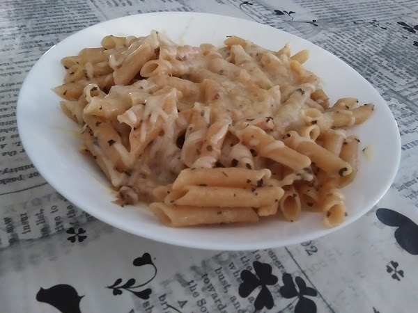 Hoy la he hecho con berenjena y pollo. Después la cubrí con queso emmental rayado y la metí al micro 2 minutos para que el queso se fundiera. Quedaron cremosos y para repetir.