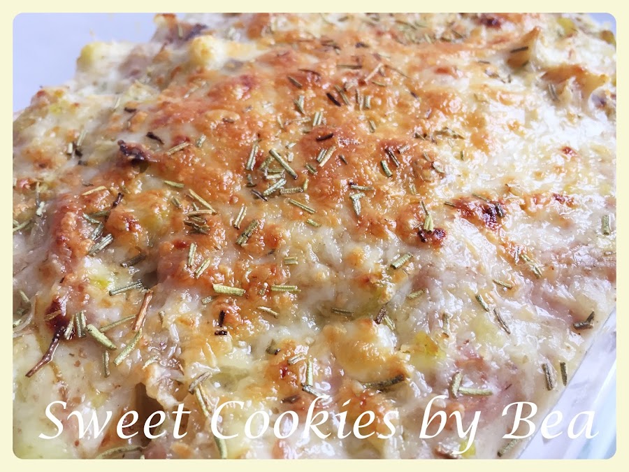 En esta receta podéis usar la cantidad de queso que queráis, sin pasarse claro, y haciendo una convinacion lógica de los quesos para no perder el sabor de uno con otro. Por eso yo he usado solo el roquefort y el semicurado para el gratinado, si le ponía otro queso con el sabor que tiene el roquefort no lo iba a notar. Podeis usar como hace Lorraine el parmesano y el gorgonzola, o simplemente el que tengáis en casa. Igual que en vez de jamón york usar panceta como hace ella. Pero es que yo le quería quitar calorías a este plato que ella luego está horas en el gimnasio y yo ahora no puedo hacer mucho ejercicio.