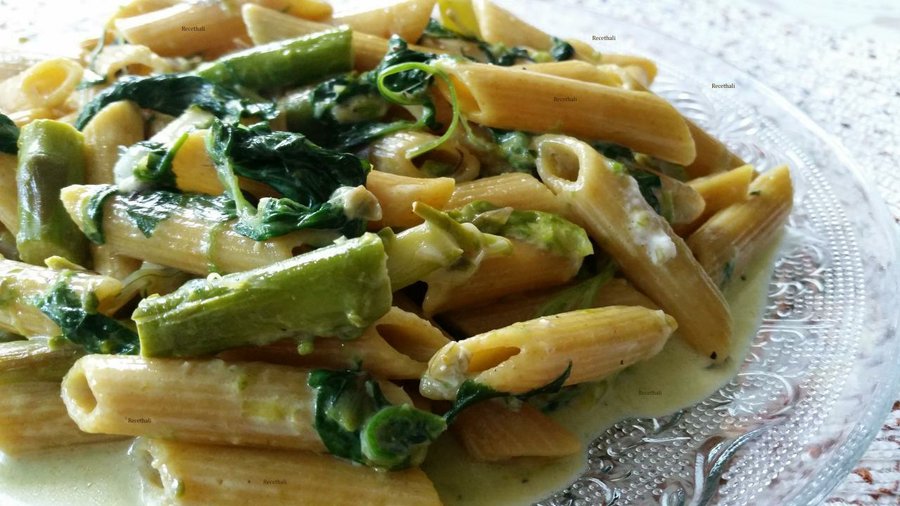 *Pasados los 10 minutos quitamos la tapa, seguimos rehogando y ahora añadimos las hojas de espinacas. Volvemos a tapar y dejamos que se cocinen 5 minutos más. Después de los 5 minutos rehogamos de nuevo, salmpimentamos y añadimos la nata (crema de leche). Removemos bien y esperamos a que empiece a burbujear la nata (crema de leche) y espese un poco (5-10 minutos). Añadimos también el queso feta (opcional), integramos en la salsa y ahora ponemos la cantidad de macarrones que deseemos, integrando bien todo con la salsa.