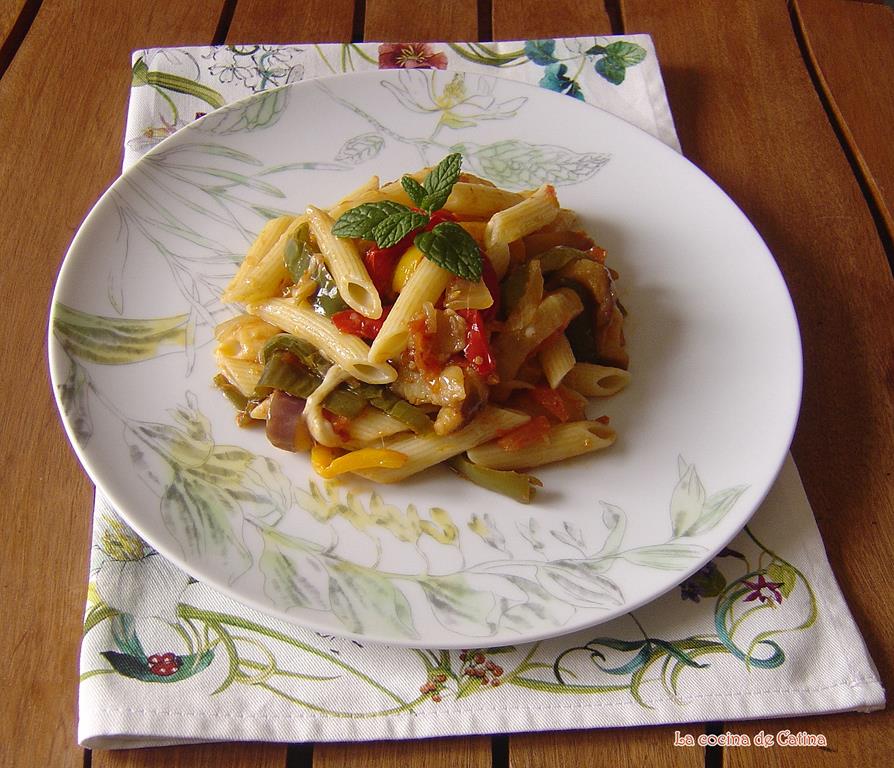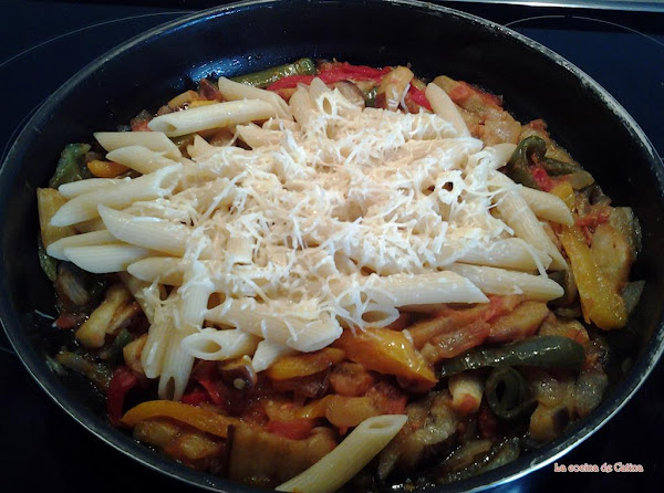 En una cazuela con agua y sal, cocemos los macarrones hasta que estén al dente (nos guiamos por el tiempo que ponga en el envase). Escurrir y mezclar con las verduras. Añadir el queso parmesano a la hora de servir.