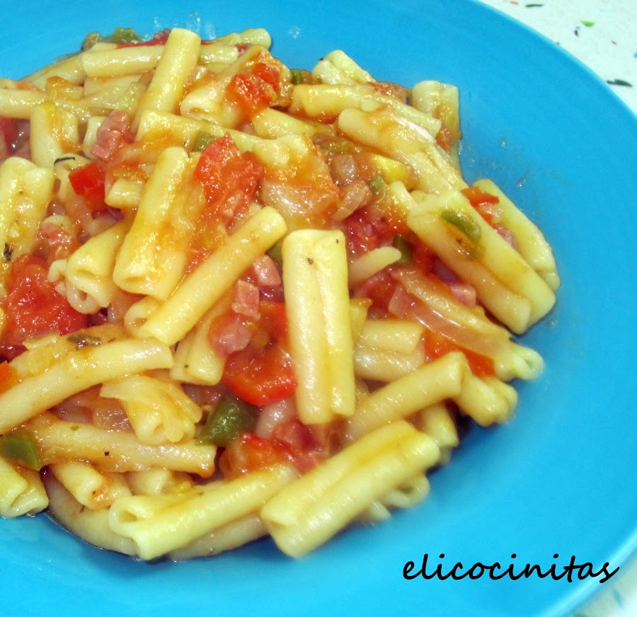 No hay nada que me guste más que un buen plato de pasta y como me encanta probarla de todas las formas y colores encontré un día en el supermercado este tipo de macarrones que llamaban "rústicos" y me parecieron tan graciosos que me llevé un paquete para casa. Aprovechando que un amigo me había regalado unos tomates ricos de su huerta decidí hacer un sofrito casero de los de chuparse los dedos. Evidentemente podéis hacer esta receta con cualquier tipo de pasta y con cualquier tipo de tomate, ya sea natural o frito para ahorrar tiempo. Os encantará.