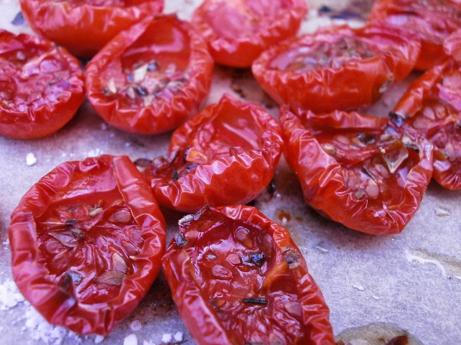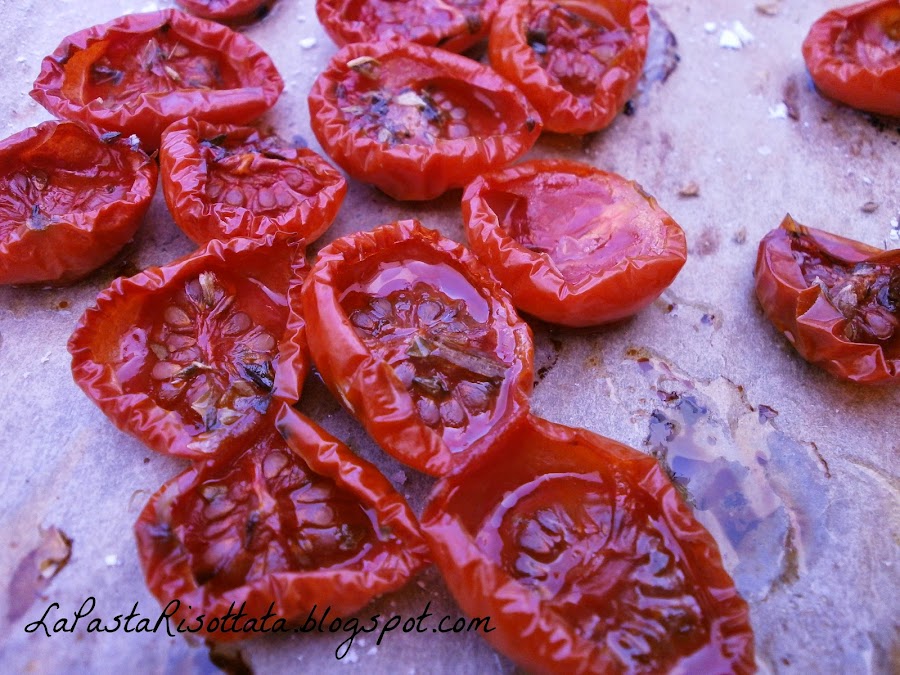 Prima di tutto preparare i pomodorini. Conviene farne in quantitá;si conservano bene in un contenitore in frigo per qualche giorno.