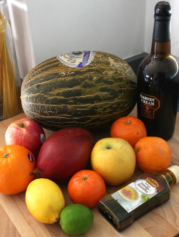Puedes hacerlo con cava o con algún vino dulce. Lo suficiente como para que la fruta se marine bien y consigamos mezcla de sabores.