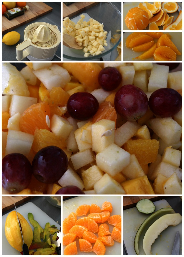 El melón. Trocea en taquitos, y al bol.