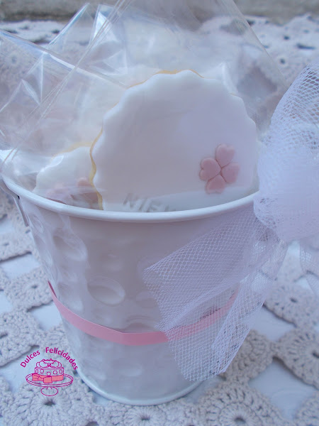 Lo normal es llevar algún regalito o detalle para el niño. Así que las pasadas comuniones preparé para dos niñas estas macetas de galletas personalizadas.