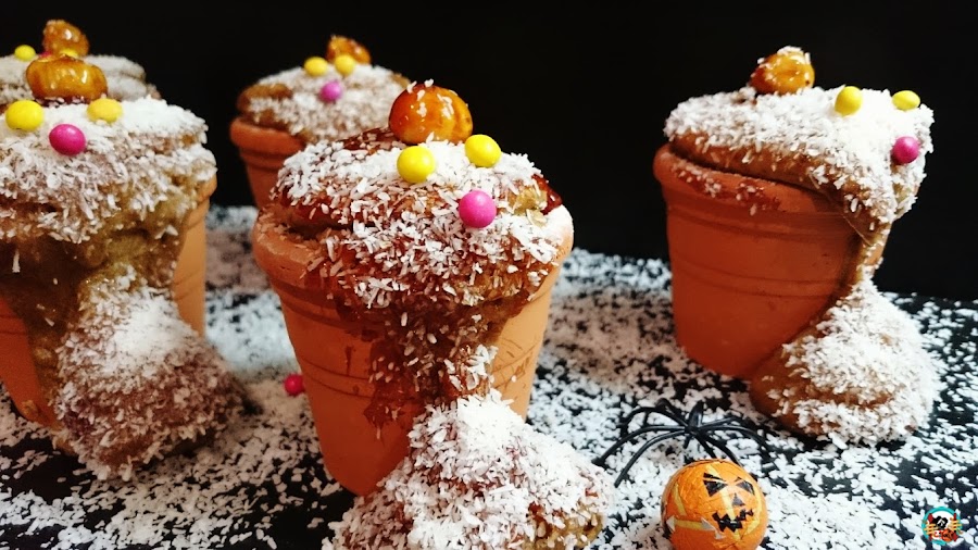 Estas macetas también son fantásticas para las fiestas infantiles. Es una receta sencilla, con una presentación que gustará a los más pequeños y también a los mayores. También son geniales para pasar un buen rato con los más pequeños de la casa, cocinando y decorando estos fantasmales muffins.Macetas fantasmas