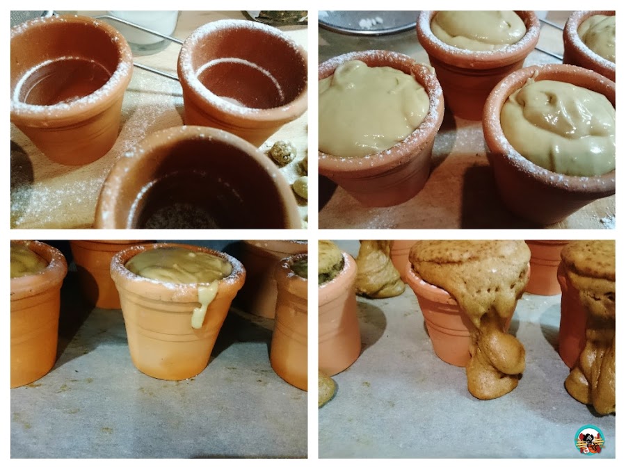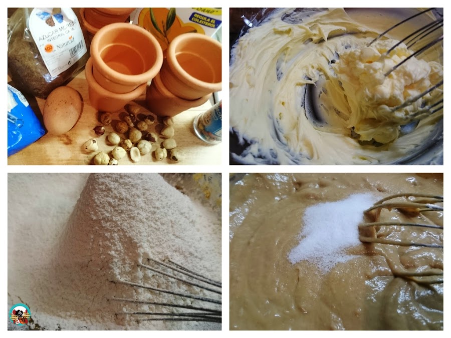 2.- Lavamos bien los molde, los secamos y engrasamos con mantequilla. Esparcimos por encima un poco de harina. Repartimos la masa en moldes, llenamos hasta el borde. Cocinamos con el horno precalentado a 180ºC 30 minutos.