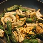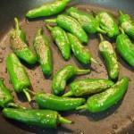 En la misma sartén ponemos los pimientos de padrón y, si fuera necesario añadimos una cucharada más de aceite.