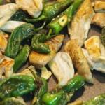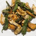 Con pimientos de padrón y unos ajitos laminados, resulta un plato espléndido y muy sabroso.