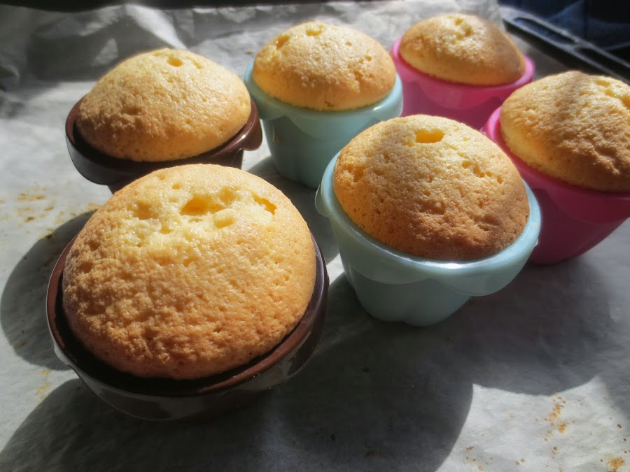 7- Llenar los moldes 3/4 partes, y hornear los pequeños unos 15 minutos, los grandes de magdalena unos 30 minutos.