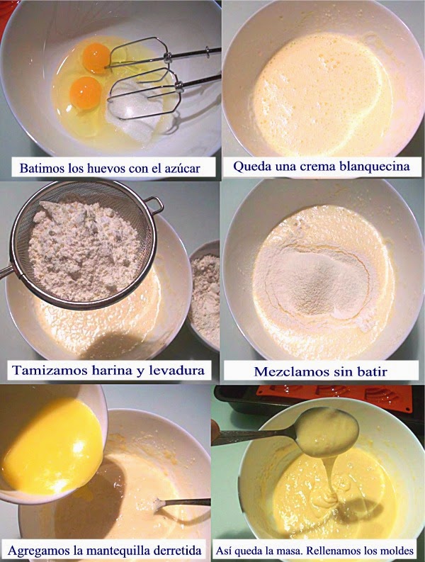 El molde que he utilizado es de silicona y venía con un librito de recetas, así que las he hecho al pié de la letra y han salido espectaculares. Un bocado delicioso.