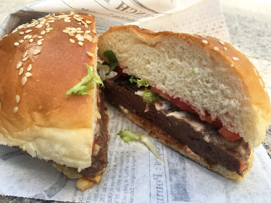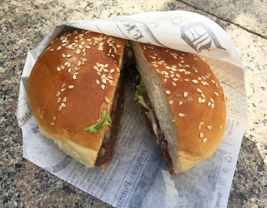 Hamburguesa de toro bravo con salsa brava de "Bravo Gourmet"