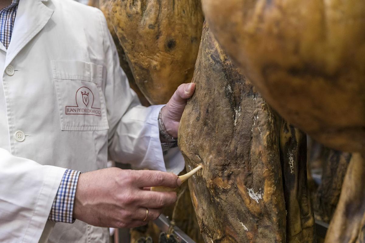 Desde la bodega, saldrán jamones y paletillas al mercado, una vez alcanzado su punto adecuado de curación, cuya evaluación de nuevo corresponderá al Maestro Jamonero. Es en este punto final donde se realiza el proceso conocido como “cala”, consistente en pinchar el jamón en los puntos clave, con un hueso punzante de vaca, para evaluar su aroma y punto de curación. El Maestro Jamonero “cala” los jamones y valora mediante el olfato el punto de los mismos, un proceso que sólo los muy entendidos pueden realizar. En definitiva, estamos ante una figura cuyo papel es fundamental para conseguir un jamón de la máxima calidad, un nivel de excelencia a la altura de los paladares más gourmets del mundo, que es lo que buscamos en Jamones Juan Pedro Domecq. El nivel de exigencia establecido por el Maestro Jamonero y la dedicación del mismo determinarán de forma esencial la calidad, el sabor, el aroma y todas esas características que hacen de nuestro jamón 100% ibérico de bellota uno de los manjares más exquisitos que podamos encontrar.