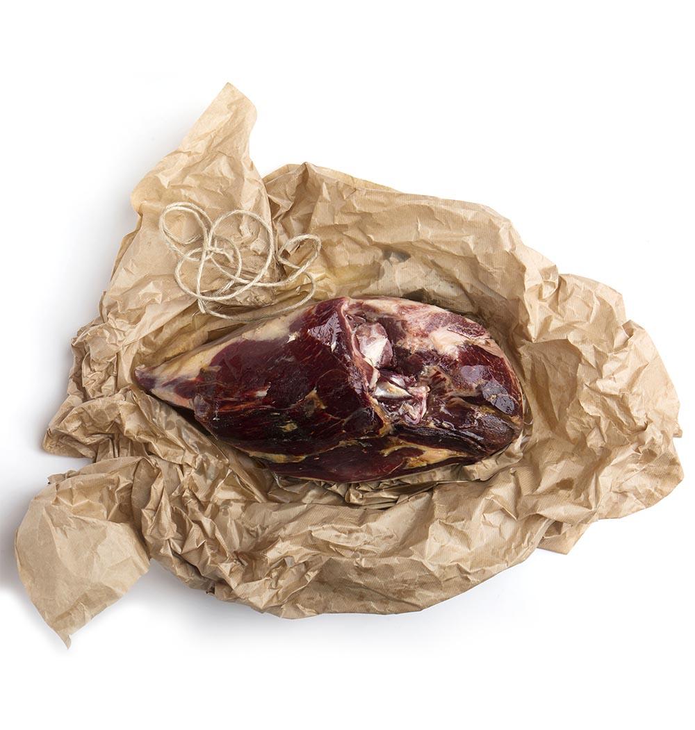 Secadero: En esta etapa los jamones se cuelgan en bodegas naturales donde se secan de forma tradicional. En este período se produce el denominado “sudado” del jamón, el alto componente de bellota en la alimentación de nuestros cerdos, es clave para que la grasa exterior de los mismos, a temperatura ambiente, se vaya derritiendo poco a poco Esto potenciará sabores y aromas. Su duración y el control de humedad y temperatura, por medios estrictamente naturales, quedan de nuevo a cargo del Maestro Jamonero.