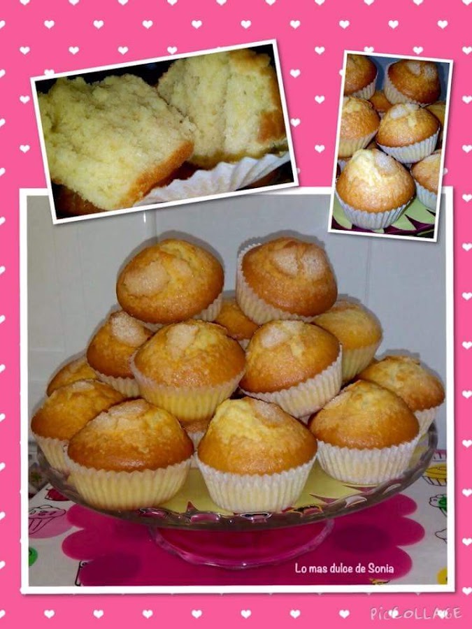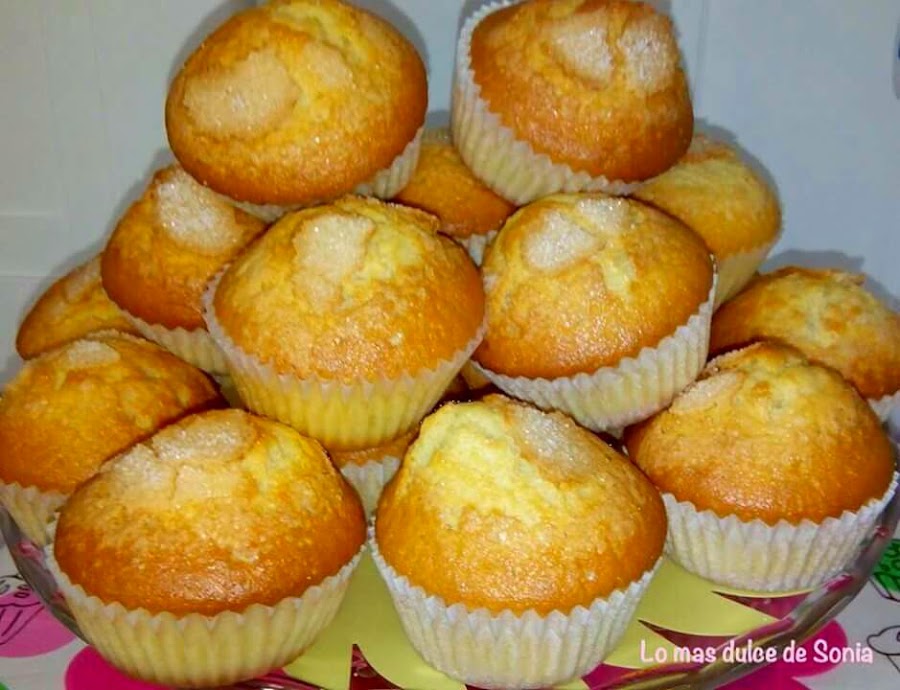 Espolvoreamos con azúcar las magdalenas. Horneamos durante 15 minutos.