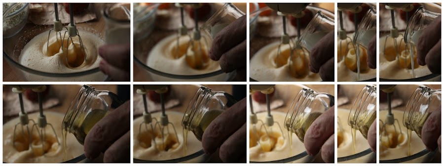 Una vez bien mezclado, añadiremos esto a la mezcla de huevos; también en marcha lenta.
