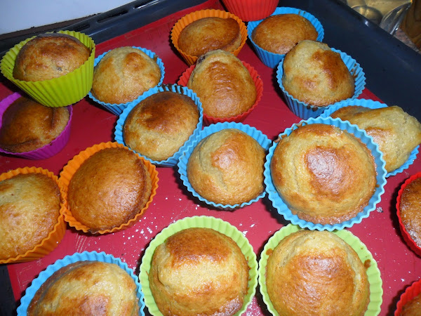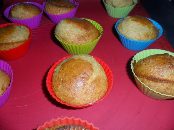 Dejar reposar la masa unos 10 minutos y repartir en los moldes ligeramente engrasados, yo los puse en silicona.