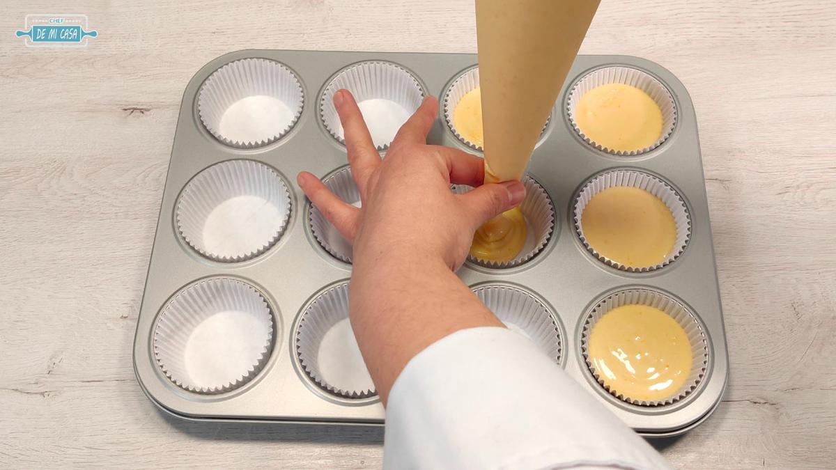 Colocamos las cápsulas de las magdalenas en una bandeja para cupcakes.