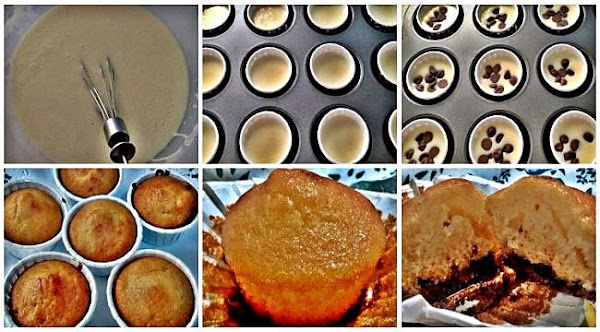 Les podemos poner las pepitas de chocolate y dejar que se vayan al fondo para tener una capita de chocolate o las podemos pasar por harina de arroz para que no se bajen. Las vamos a meter a 180º con el horno precalentado.