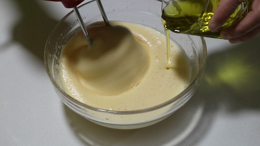 3. Sin dejar de batir vamos agregando el aceite de oliva.