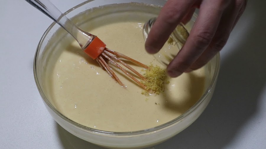 7. Una vez esté todo bien mezclado añadimos la ralladura de limón y continuamos mezclando.