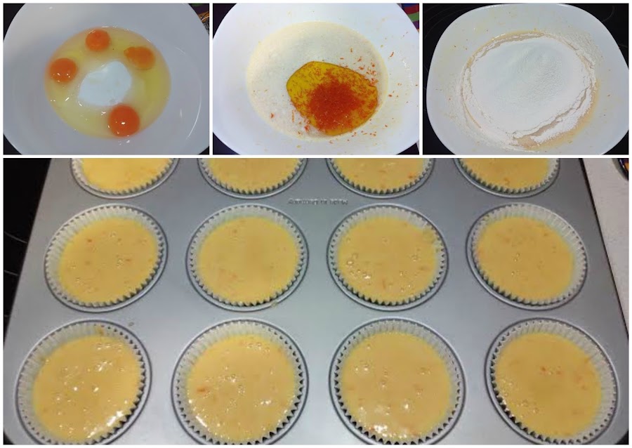 Batimos los huevo con el azúcar. Agregamos la leche, el aceite y la ralladura de naranja y volvemos a batir todo junto. Agregamos la harina tamizada con la levadura hasta obtener una masa lisa y sin grumos. Tapamos con film y reposamos en la nevera unos 30 minutos. Pasado el tiempo, colocamos las cápsulas para magdalenas en una bandeja de cupcakes y rellenamos 2/3 la cápsula.Introducimos al horno precalentado a 180º unos 25 minutos.