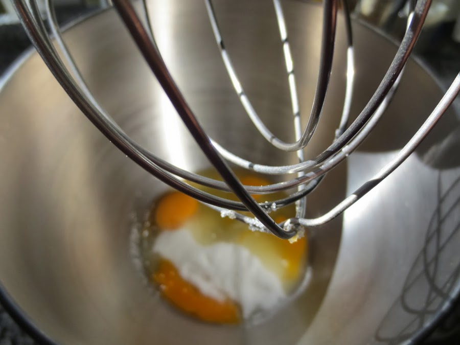 3- Colocar los huevos y azúcar en el bol y blanquear con las varillas a máxima velocidad unos 2 minutos, hasta que espumen bien.