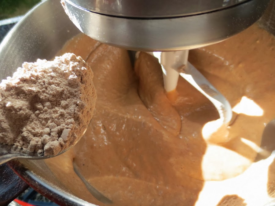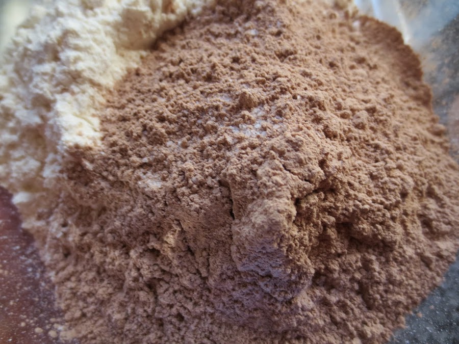 2- Mezclar un poco la harina con el cacao y la levadura. Reservar.
